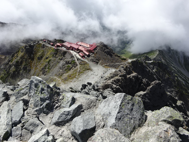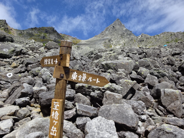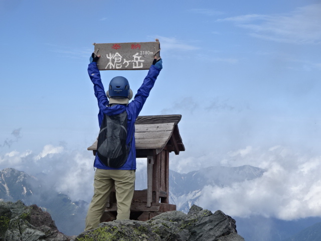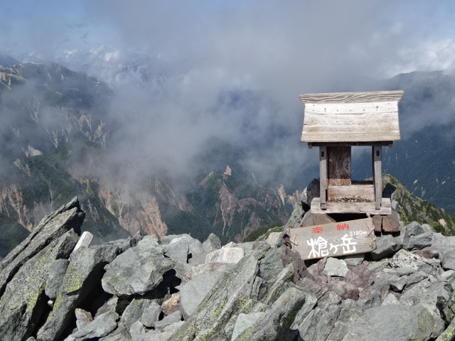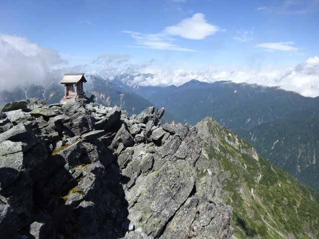 44 槍ヶ岳山頂 (祠後が穂高方面) |