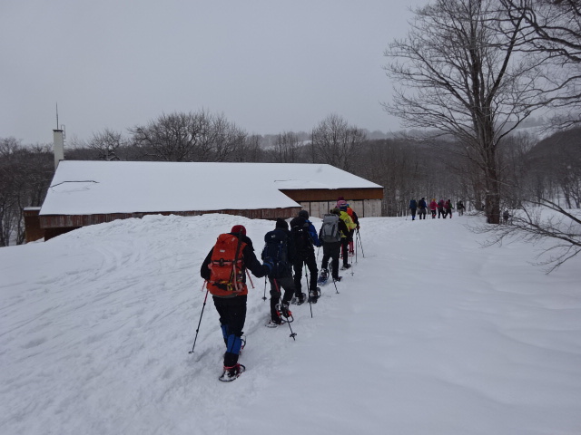 | 2026.01.31-02.01 雫石七ツ森・国見山 (有志14名) ①今や全国区の湯治宿。ひなびた名湯で土曜日確保は至難の業。ところがキャンセルか、ポッと空いたので即ゲット。そして山だが近くの冬山低山はほぼ登り尽くして、初の氷上歩きの山は氷厚さ不足で断念。代案は雫石七ツ森へ。快晴だ。しかし藪でワカンでも膝まで潜ってラッセル交代、304m見立森バンザイだ。次の三角森へは風もなく快適で山頂はピカチュウ標識。ここで七つ制覇は諦めて稗糠森へ。住宅街の日曜日はひっそりで、山頂は標識なし。そして勘十郎森へは何とももまでズボっと。もうタイムアウトで宿へGO。雪見温泉3つも入って大満足。②極楽寺から急な階段が続き、胎内岩は要注意で展望台。雪が上って眼下の雪景色が美しい。そして国見山まで足を延ばし、戻って平和観音像でパチリ。帰りは鬼剣舞と餅まきの節分見学で、雪の無い仙台に帰りました。 |
