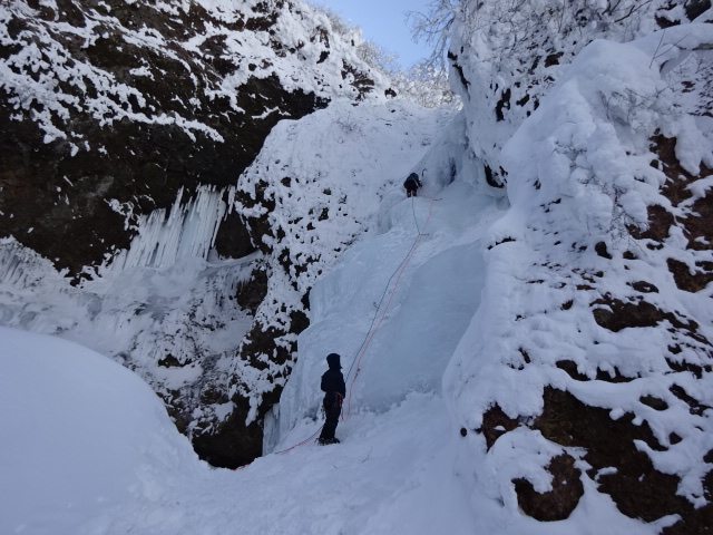 | アイスガーデン着 | アイスクライミング | 氷にはしゃぐ人 | 登り返しが辛い | 上に戻った | |